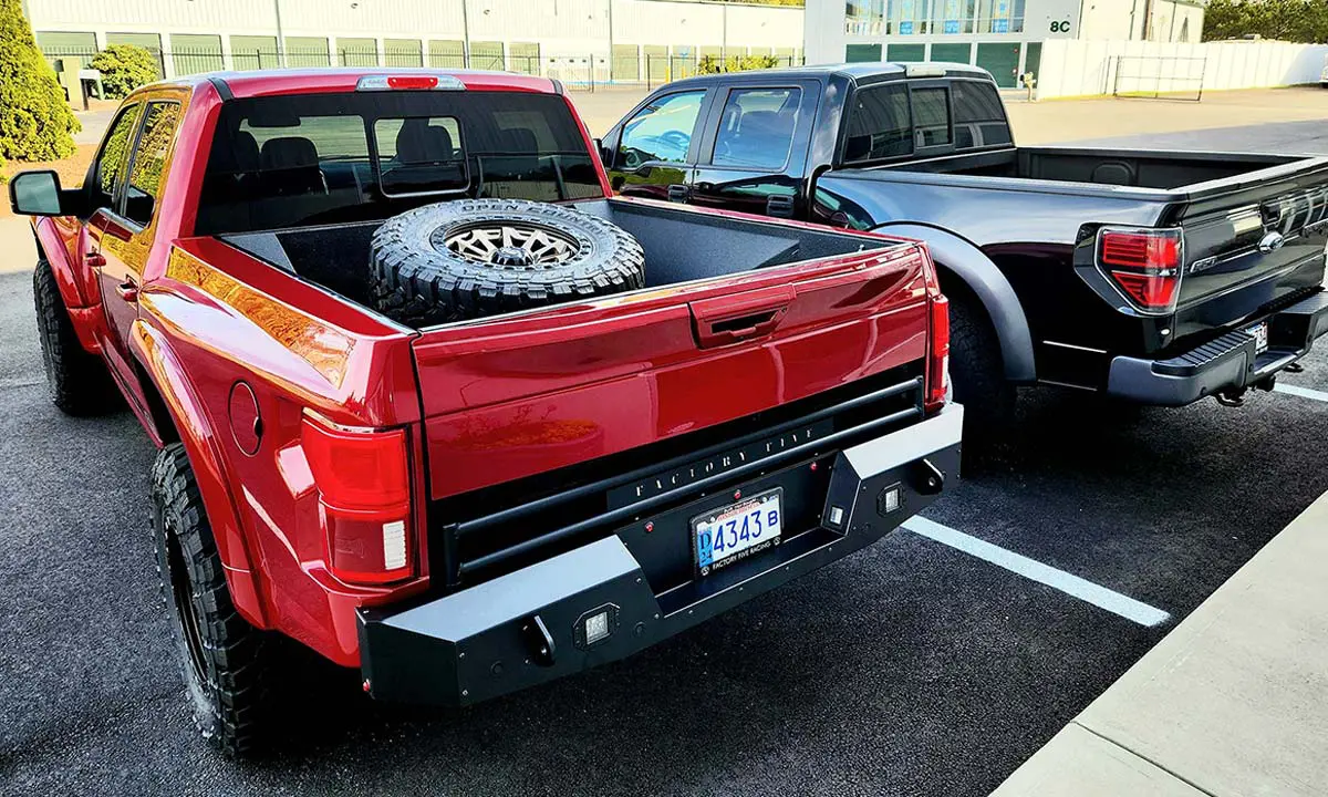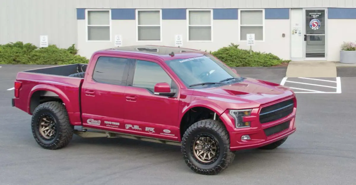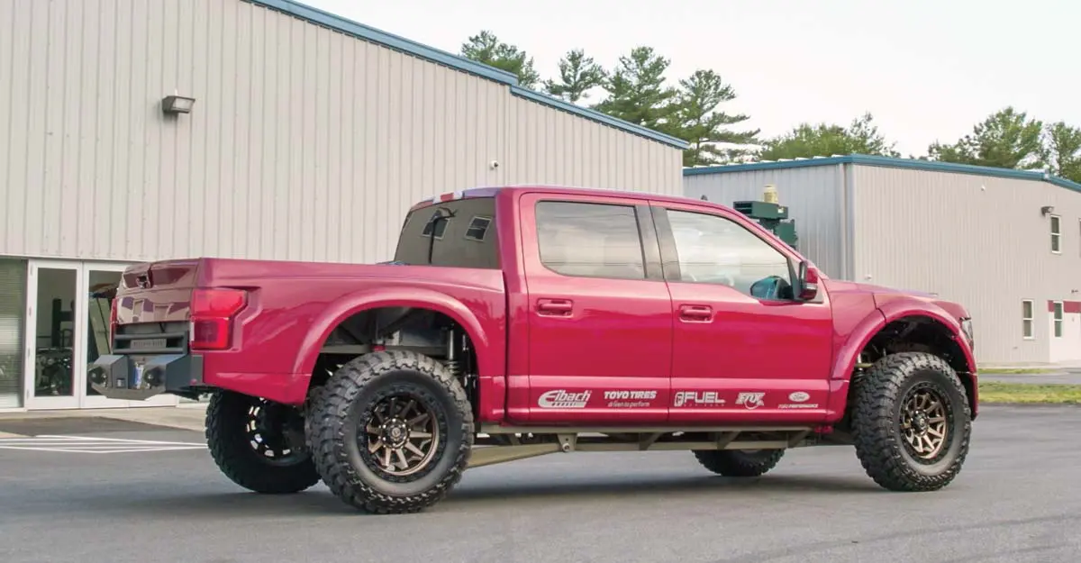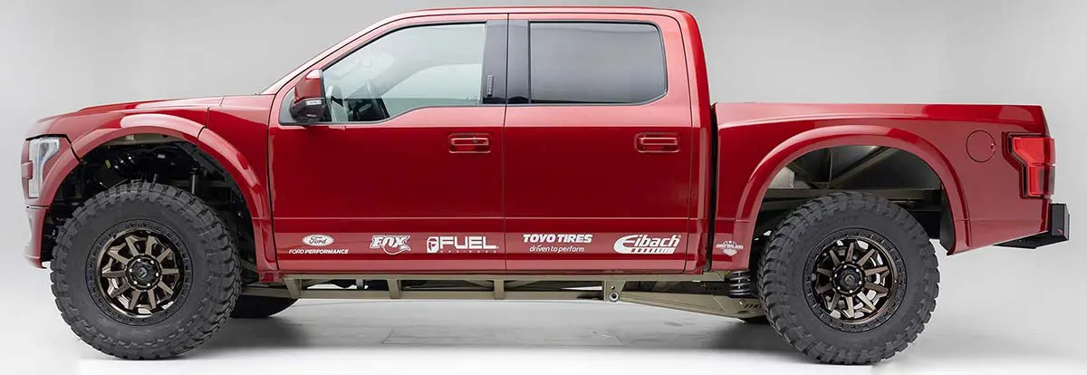 There are some things you need to have on your F-150. Our chassis was designed to use the 4-door Super Crew Cab only. The F-150 bed needs to be the standard 5-½' bed. The fuel tank is used and moved to allow longer suspension travel so your F-150 needs to have the standard 26 gallon fuel tank, not the larger optional 36 gallon fuel tank.