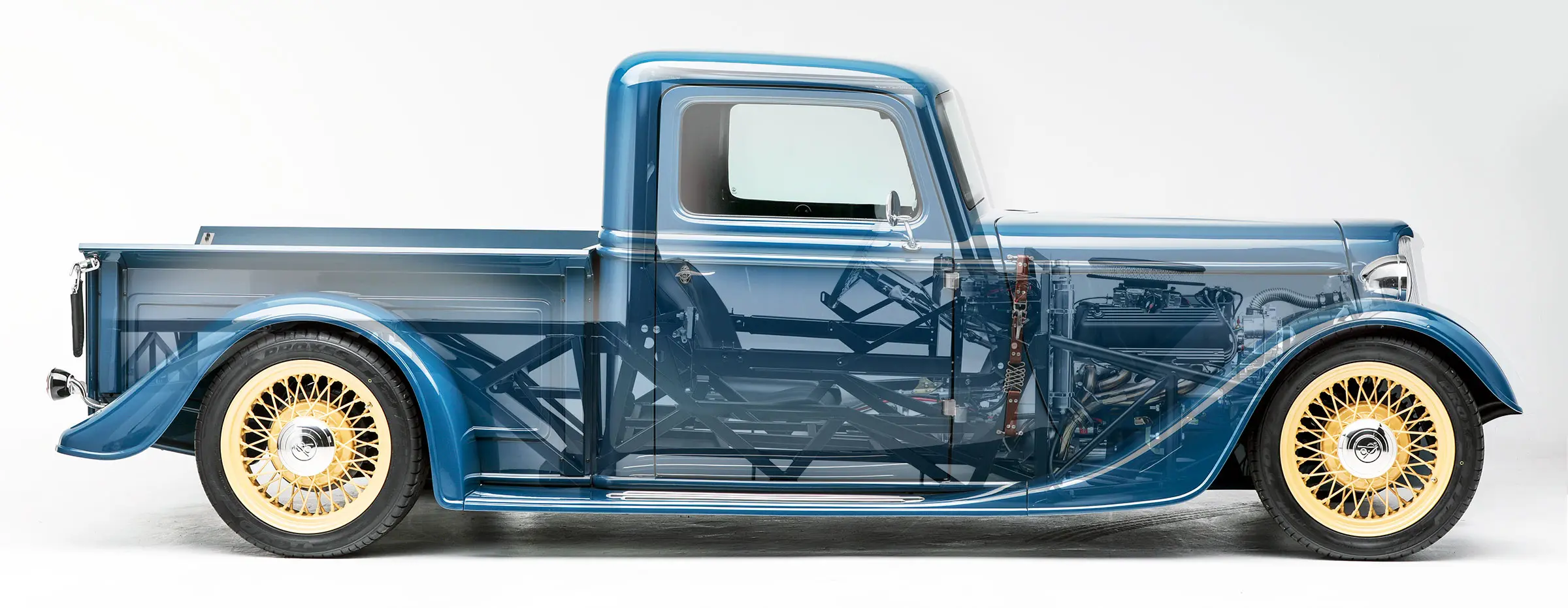 The ‘35 Hot Rod Truck is set up to use either Ford or Chevy engines. Choose from small block Ford 289/302, 351, 4.6L engines and the new 5.0L Coyote or the Chevy small block and LS series of engines. We've also added an option to install a Hemi.