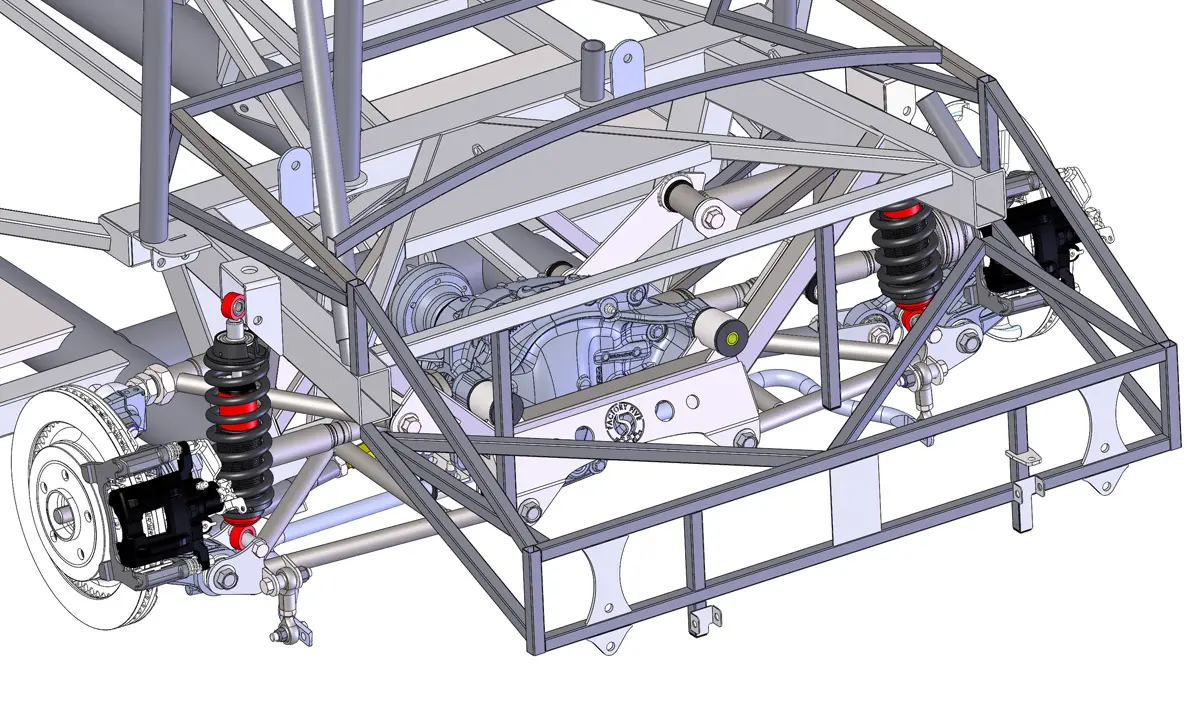 The Factory Five Mk4 frame is computer designed on Solidworks™ software using Hewlett Packard workstations.
